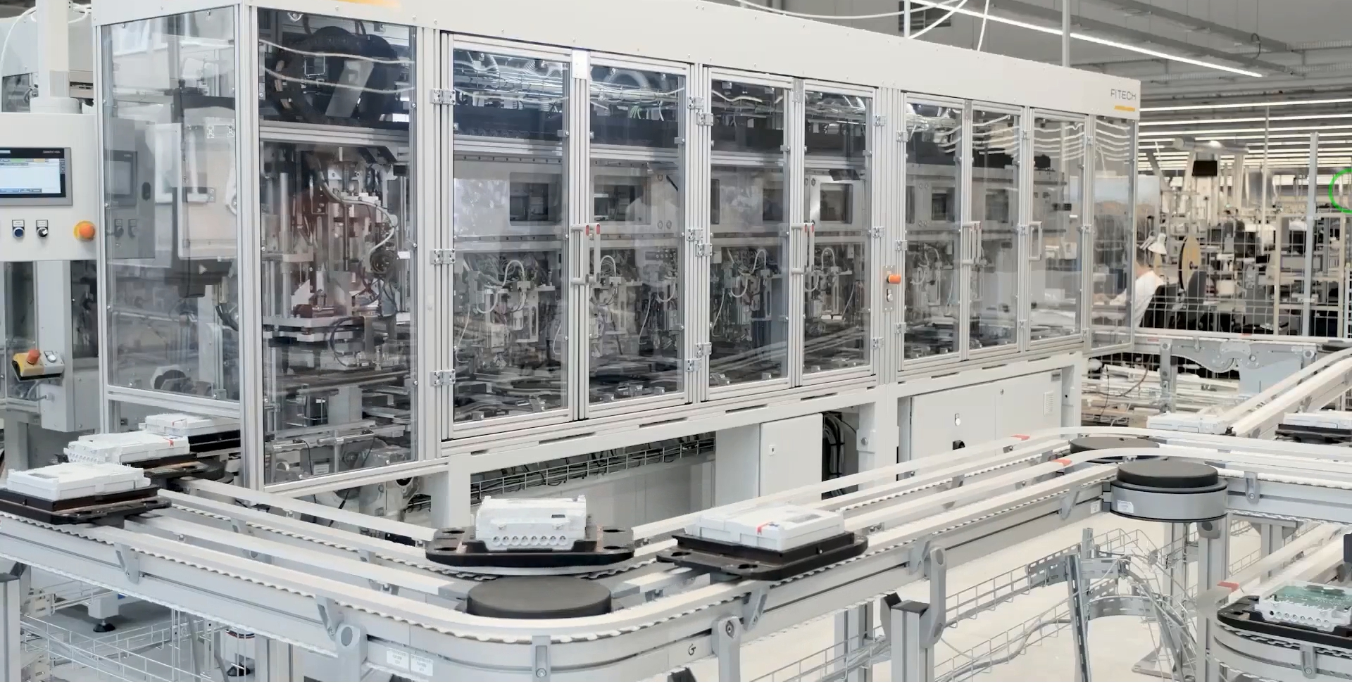 1、整線分為ABC三個(gè)托盤段;按裝配工序段共分為23工序段;并另加LWR分線裝配,共24工序段。A、B段包含:中框上料、裝配、螺絲鎖付及氣密測(cè)試。C段包含:裝配、涂布、FIPG固化、氣密測(cè)試、絕緣測(cè)試、電特測(cè)試。